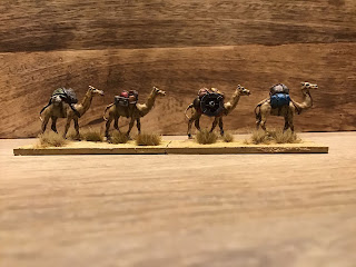 Anyway, I noticed this thing going on throughout the various challenges about camels. While rummaging through my lead pile I came across these 15mm ships of the desert, produced by Chariot Miniatures. So without further ado I present a small squadron: